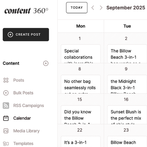 Cinematic reels, storytelling carousels, daily posts, SEO-rich captions, and Content360 scheduling included.